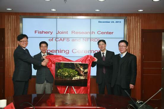 12月24日,由中國水產科學研究院、韓國國立水產科學院共同籌建的中韓漁業聯合研究中心(以下簡稱“中心”)在黃海水產研究所掛牌成立。韓國韓國國立水產科學院西海水產研究所養殖室主任張寅權,韓國駐青島總領事館領事李度基,水科院副院長、中韓漁業聯合研究中心主任劉英杰,黃海所所長金顯仕、副所長趙憲勇、原所長王清印等出席掛牌儀式。黃海所副所長、中韓漁業聯合研究中心副主任孔杰出席了韓方同期在西海所舉行的掛牌儀式。